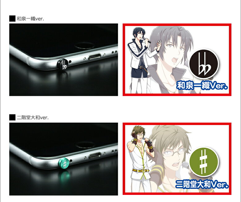 カラー 和泉一織ver,二階堂大和ver,和泉三月ver,四葉環ver,逢坂壮五ver,六弥ナギver,七瀬陸ver,八乙女 楽ver,九条 天ver,十 龍之介ver サイズ 6×8mm (ジャック部分 直径3.5mm)パッケージ:3.9×7.3×10mm 材質 本体/アルミニウム製(A5056材)表面処理:アルマイト仕上げ(陽極酸化処理) ご注意 ※商品写真はできる限り実物の色に近づけるよう努力しておりますが、お客様がご使用になられるパソコンのモニターやカラー設定・室内の照明・日光などにより色の変化が感じられる場合がございます。